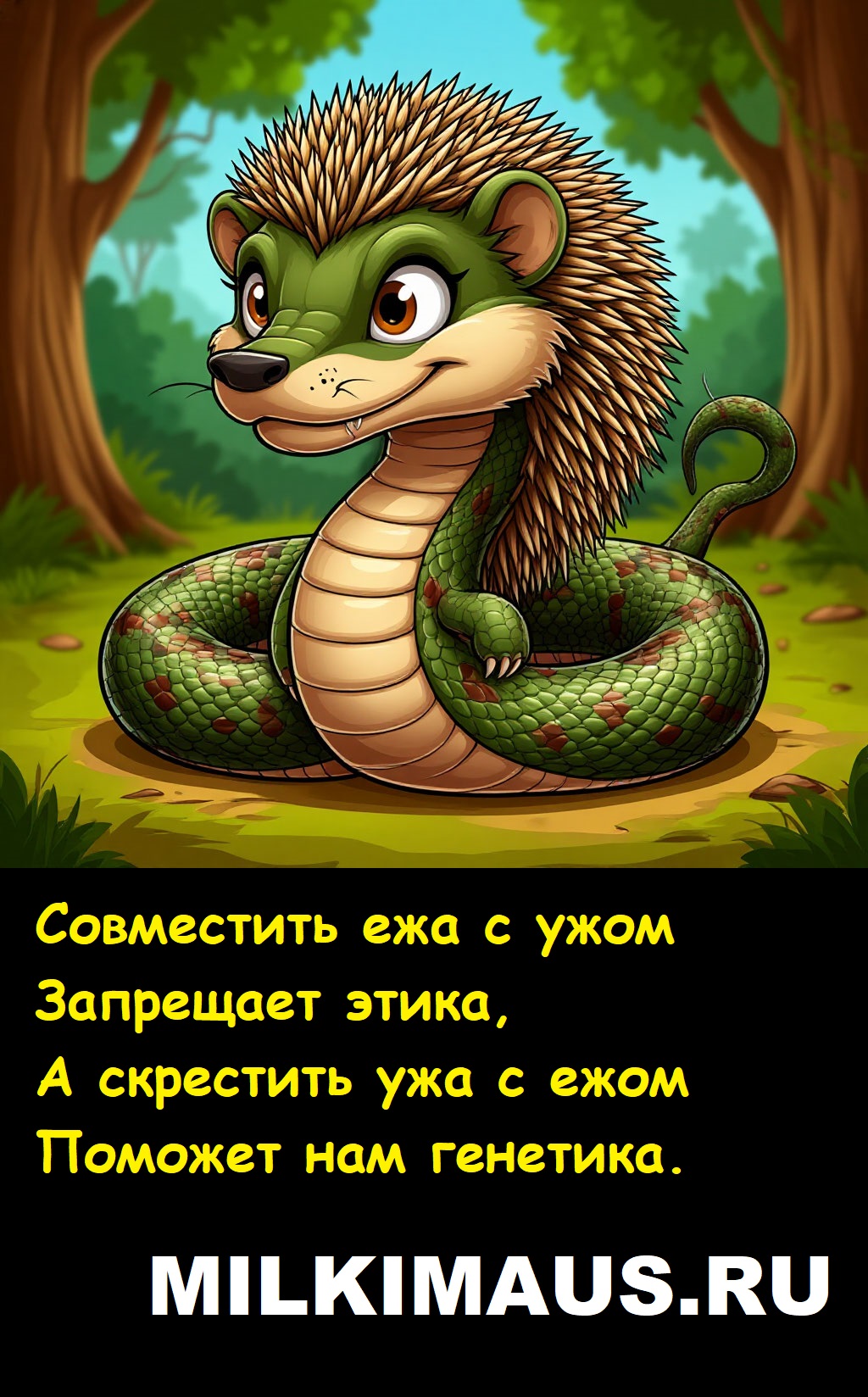 Совместить ужа с ежом запрещает этика, а скрестить ежа с ужом поможет нам генетика.