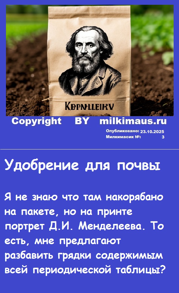 Я тебе чувака покажу который это удобрение покапает https://milkimaus.ru/elgg/file/view/2537/милкимасик-№-2