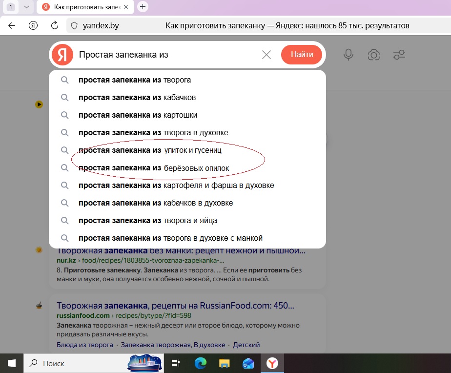 Скриншот запеканка