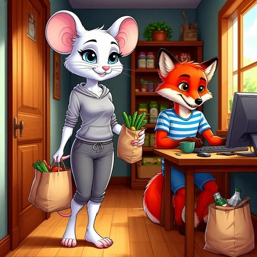 Милка пришла из магазина и принесла очень тяжелые сумки с покупками а Малли из зо всех сил помогает Милке распаковать сумки