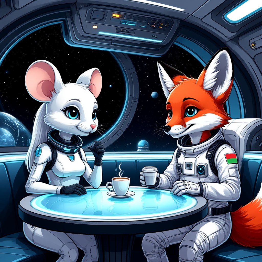 МиМ на борту инопланетной космической станции. Кофе вкусный, скафандр удобный.