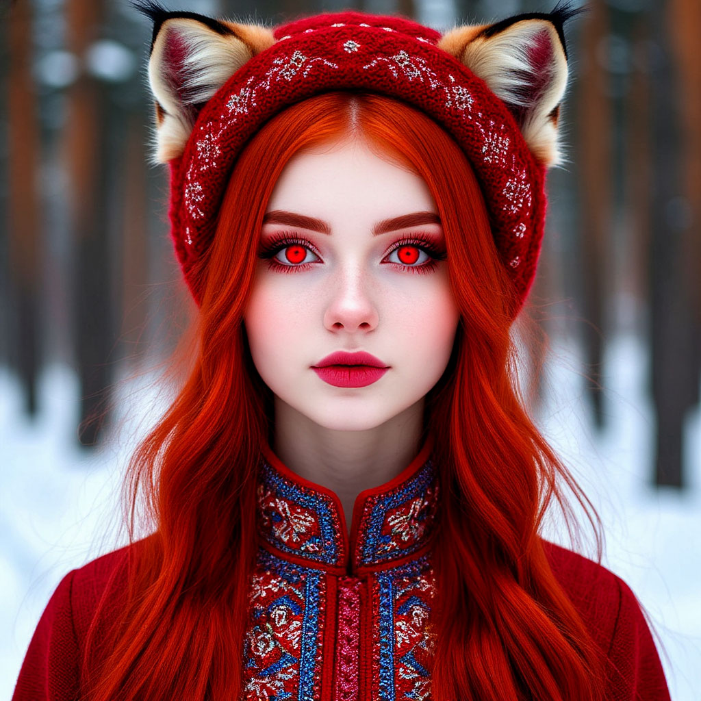 Рыжая девушка зимойна морозе
