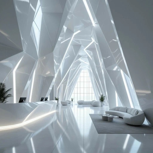 Футуристический ледяной дизайн комнаты в светлых тонах