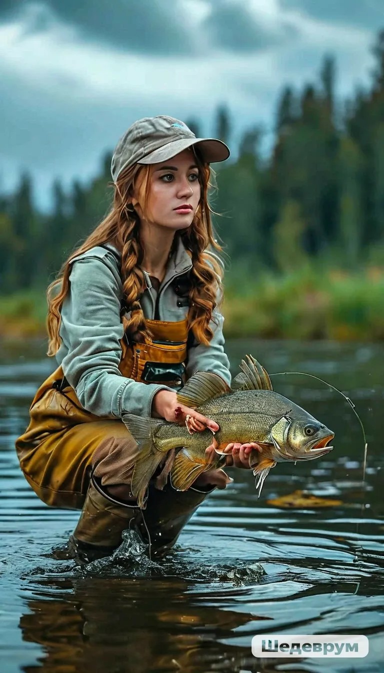 Вот так по мнению нейросети выглядит девушка на рыбалке